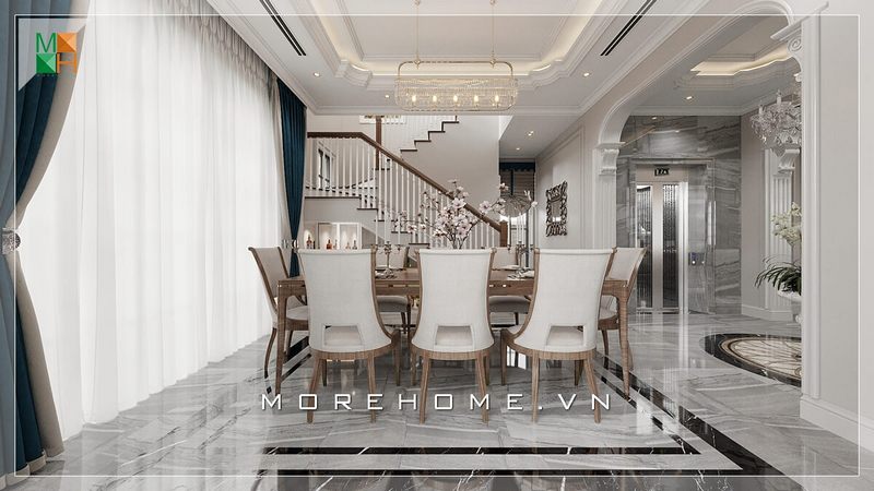 Bàn ăn biệt thự hiện đại có kiểu dáng đẹp.