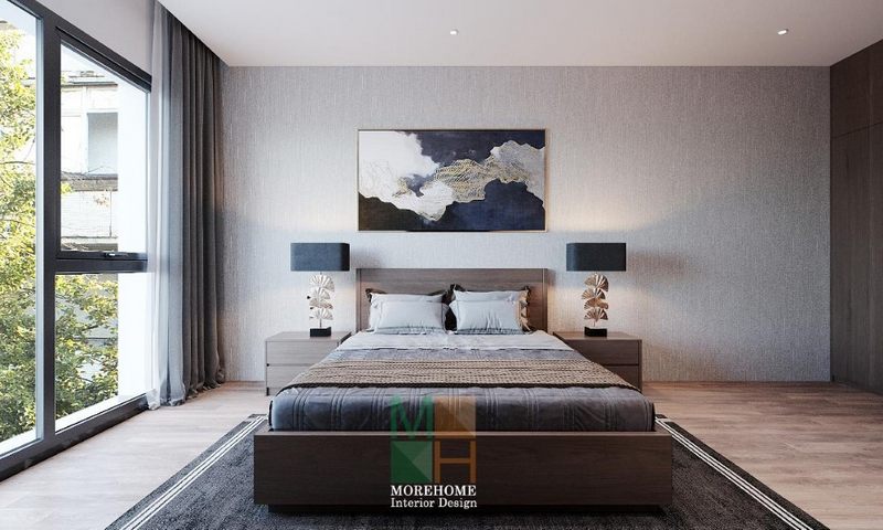 Để bố trí phòng ngủ cho cậu con trai mới lớn, lối thiết kế đơn giản nhưng có phần nam tính được chọn làm nền tảng. Giường ngủ hiện đại gỗ công nghiệp veneer óc chó là điểm nhấn nổi bật nhất trong phòng ngủ, kèm theo đó là bức tranh canvas treo tường tại biệt thự Vinhomes Imperia Hải Phòng.