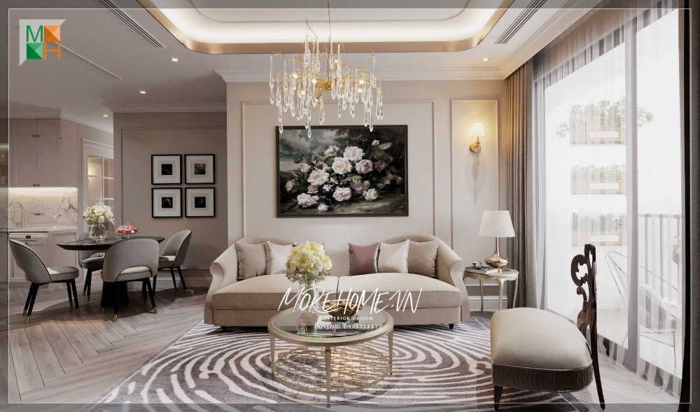 Nội thất phòng khách hiện đại và sang trọng được áp dụng trong các căn hộ chung cư.